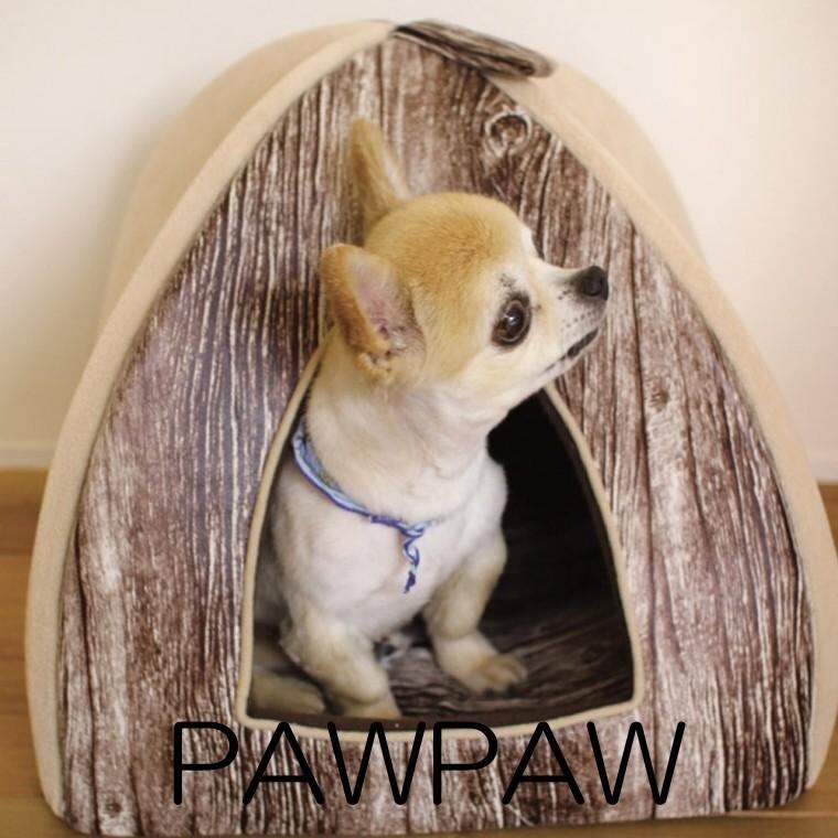リビングなどの目につきやすいところに置いても、違和感の無い木目調のプリントが全体に施されています。思わず人間もペットとお揃いで使いたくなりそう。中敷き、クッションともに裏面はあたたかなボア素材。季節によって、表裏を返せば1年中快適に過ごすことができます。小型犬やネコちゃんがゆっくりくつろげる大きさ。見た目はまるでログハウスのよう。